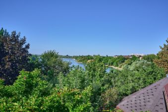 Собственный двор с ландшафтным дизайном и садом с видом на реку Кубань.