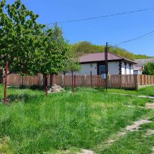 молодой сад, две яблони, черешня, две вишни и персик, виноград, инжир, есть участок клубники .