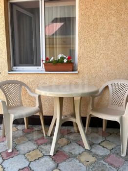 Основной двухэтажный дом площадью 110 кв. м включает приватную зону владельца на первом этаже с двумя комнатами, кухней и террасой.