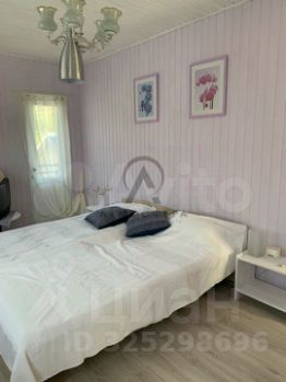 Спальни на втором этаже отделаны натуральной вагонкой и выкрашены в нежные лавандовые оттенки.