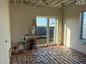 Коммуникации: Электричество 15 квт, газ (скоро подключение), водопровод, канализация - септик , теплые полы по всему дому.