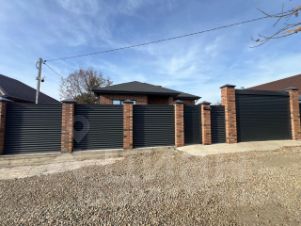 По периметру участок огорожен забором,по фасаду капитальные кирпичные колонны, откатные ворота,калитка. Забетонирована отмостка вокруг дома и площадка для автомобилей.Завезен чернозем.