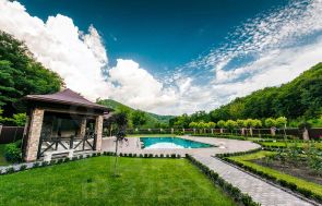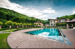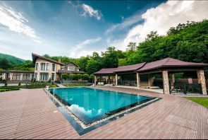 Продаем шикарное домовладение в Туапсинком районе. Большая территория дома расположена на склоне в лесном массиве, участок 8553 кв.м. плюс 5000кв.м. вертолетная площадка, участки в собственности.