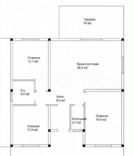 В доме 3 комнаты, большая кухня-гостиная с выходом на террасу, с/у совместный. Предчистовая отделка.