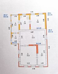 Общая площадь 54,4 кв.м., жилая-45 кв.м. 4 комнаты. Стены саман, обложен кирпичом. Дом разделен на две независимые части.