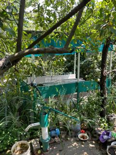 Двор ухожен, с ландшафтным дизайном. Забетонирован, на заднем дворе — зона отдыха. На территории есть хозяйственные постройки, в гараже-подвал, огород площадью 8 соток с плодовыми деревьями, кустарниками, овощами и зеленью.