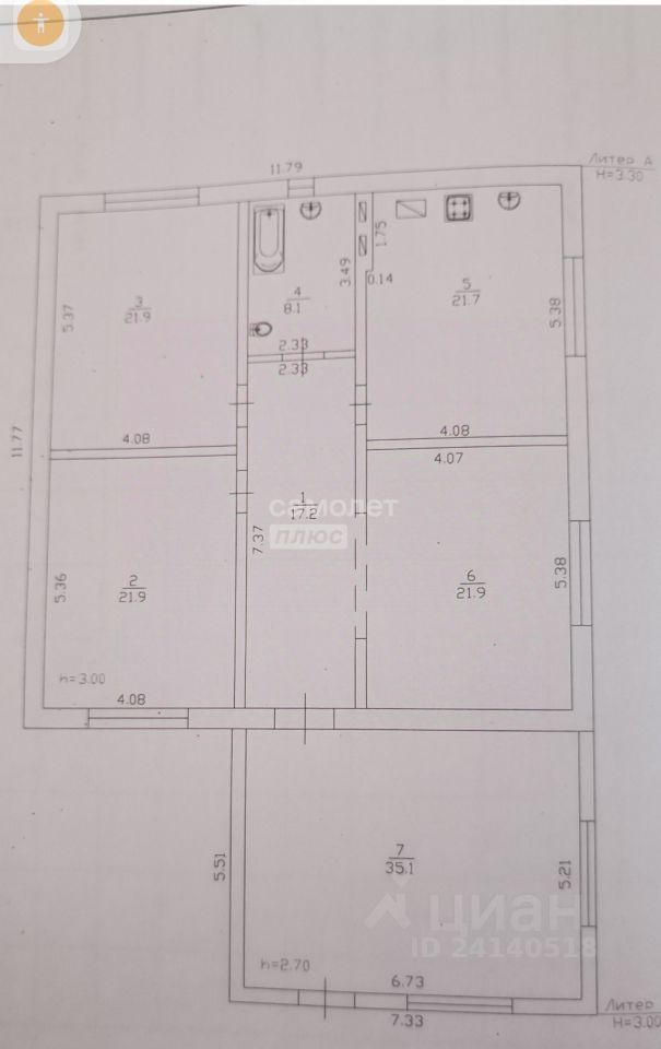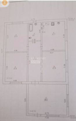В доме три просторные комнаты площадью по 21 квадратному метру, а также кухня, гостиная и большая прихожая. Имеется подвал.