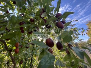 В саду все плодовые деревья: яблоки (все лето разные сорта), груши, персики, абрикосы, урюк, слива, айва, вишня и черешня. Есть липа и можжевельник. Есть миндаль и финик, орехи (за забором), шиповник...