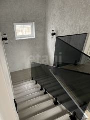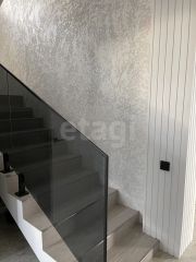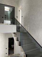 Лестница из бетона, отделка - керамогранит, стеклянные лестничные ограждения