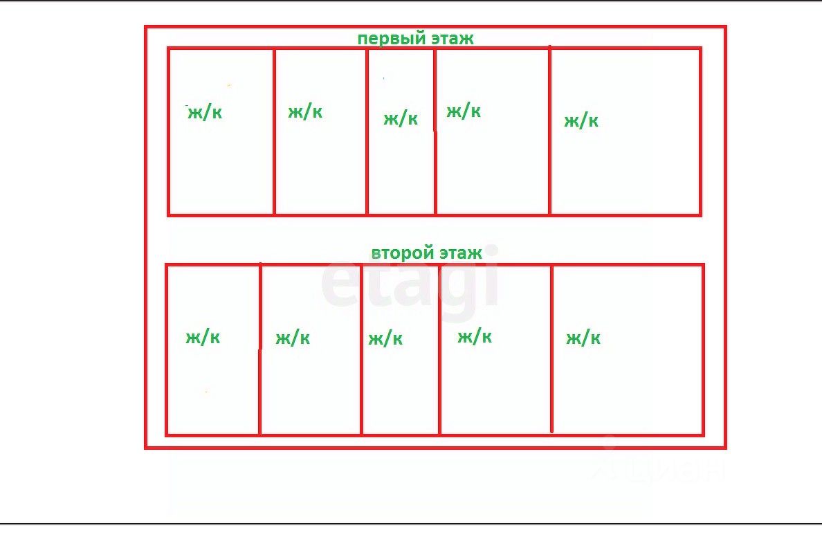 Общая площадь здания составляет 370 кв.м, и оно удобно разделено на два этажа с 6 номерами на каждом. На территории имеется полностью оборудованная кухня с кухонными шкафами, столом и стульями, а также вся необходимая посуда для приготовления пищи.