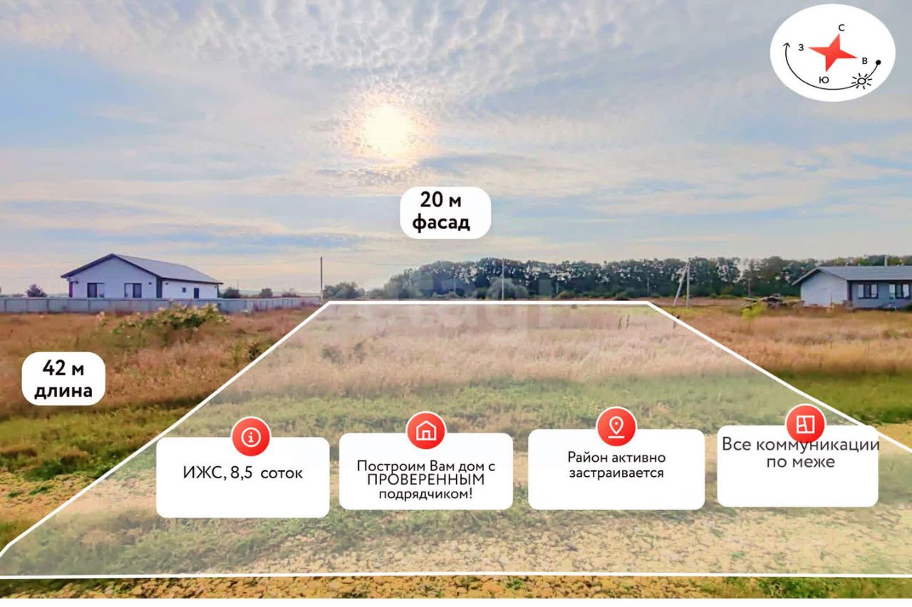 Все коммуникации проходят по меже. Рядом застроенная жилая застройка, район постепенно застраивается.