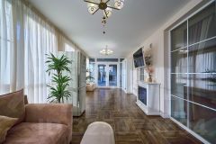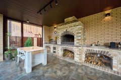 Большая кухня -столовая и огромная витражная гостиная тоже порядка -35м. Всё делалось для себя. Остаётся практически вся встройка .На улице есть отапливаемый туалет и хоз. блок для инвентаря.