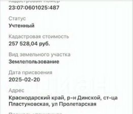 Участок расположен в центральной части станицы Пластуновская. Все коммуникации. Газ и электричество на участке, вода рядом.