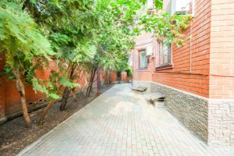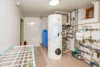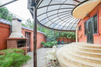 Есть большой навес для машин, мангальная зона из кирпича, двор застелен плиткой на бетонной подушке, установлен резервный генератор на 30 кВт.