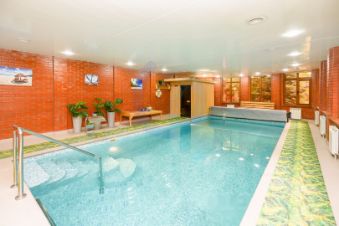 Отдельно стоит закрытый бассейн с баней, полностью автономный.