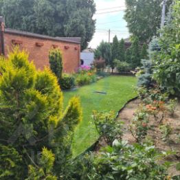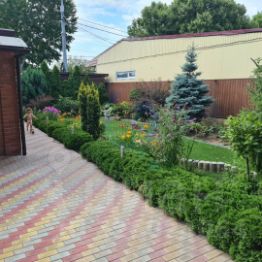 Собственный земельный участок с ландшафтным дизайном и гараж на территории.