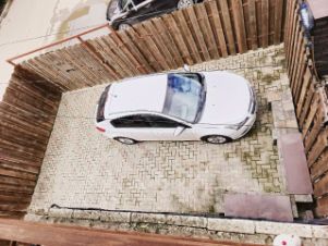 Участок включает парковку для двух авто, вымощенную тротуарной плиткой и зона барбекю.