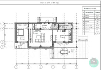 На 1 этаже - кухня 18 кв.м., гостиная - 36 кв.м., спальня 17 кв.м. и 2 террасы - 69,5 и 6 кв.м., котельная 5,6 кв.м., прихожая 8 кв.м. и с/у