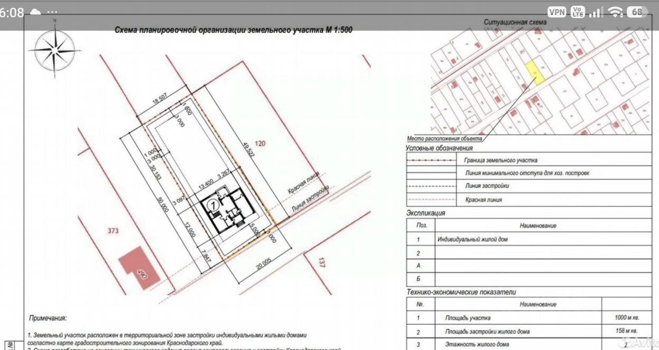 Участок 20*50 м 20 метров фасад) в 500 метрах от моря, с готовым фундаментом (залит в августе 2023 г. глубина 1000 мм) под проект 2-х этажного дома КД-90 RICKHAUS, проект со сметой и разрешение на строительство передам при продаже. На участке по границе проходит газ, электричество - (столб для подключения установлен на участке в августе 2024) заявку в Россети ( 15 кВт) подал и оплатил, подключат в мае, вода с двух соседних участков (из г. Ейск, артезианская), асфальтовая дорога с фасадной стороны участка, при необходимости предоставлю проект для ознакомления, торг уместен, возможен обмен на меньший участок в Ейске с доплатой