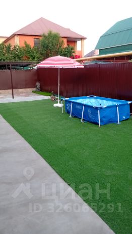 Вторая площадка из искусственного газона под летний бассейн и шезлонги.