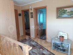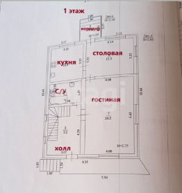Первый этаж -кухня, столовая, гостиная, холл, сан. узел. В кухне, столовой и сан. узле плитка и теплый пол, в комнатах ламинат, везде натяжные потолки.