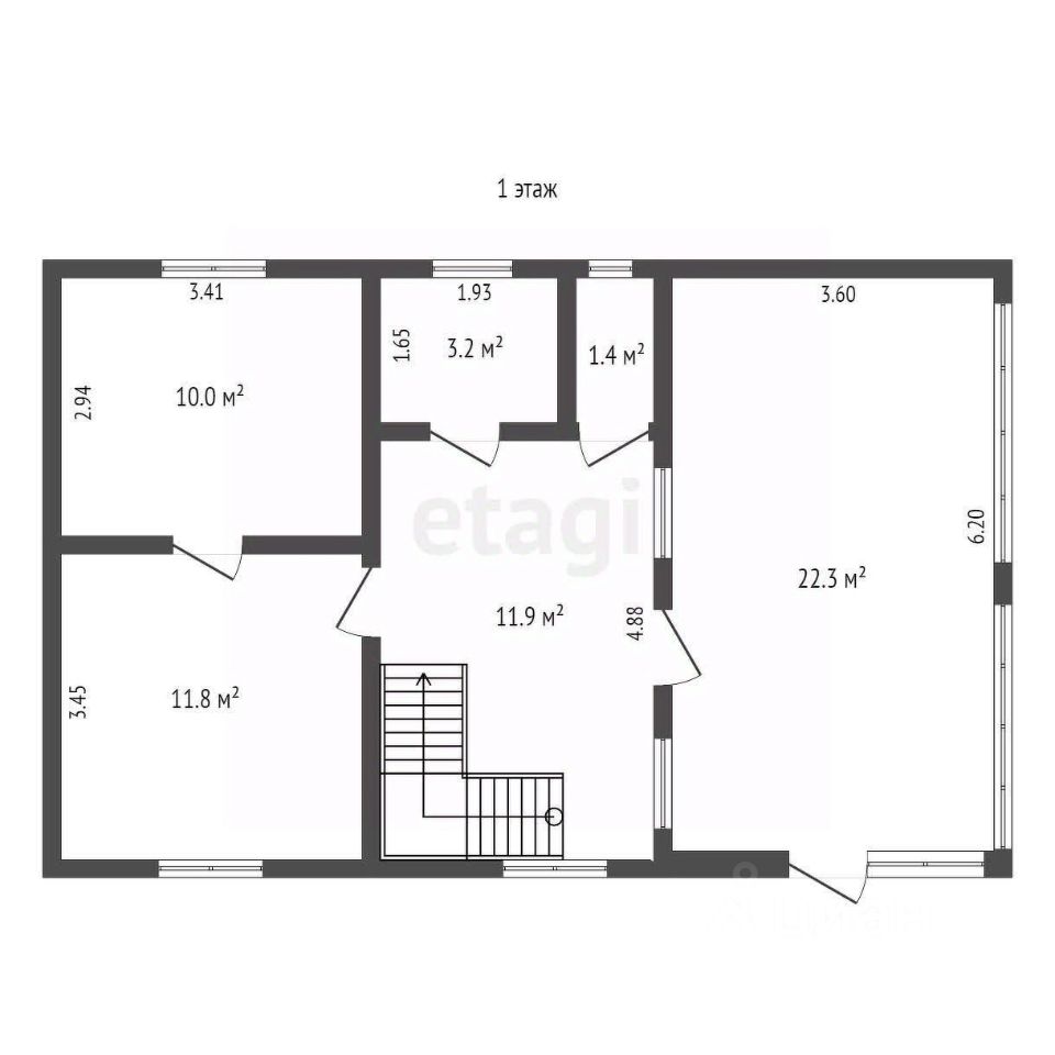 На первом этаже расположена большая гостиная, холл, кухня, душ и санузел раздельный. На втором этаже две большие светлые спальни.