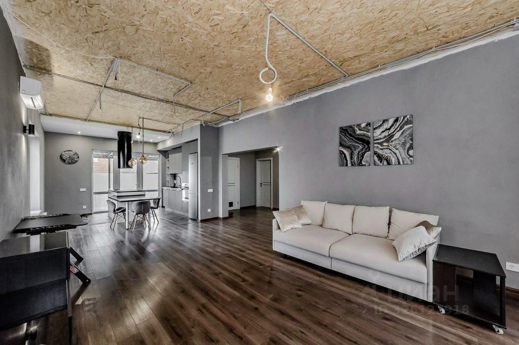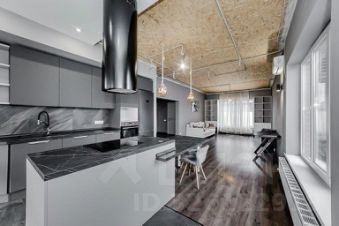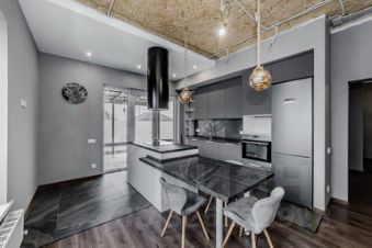 Кухня-гостиная площадью 41,2 кв. м с встроенной современной мебелью, тёплым полом и выходом на террасу (15,2 кв. м).