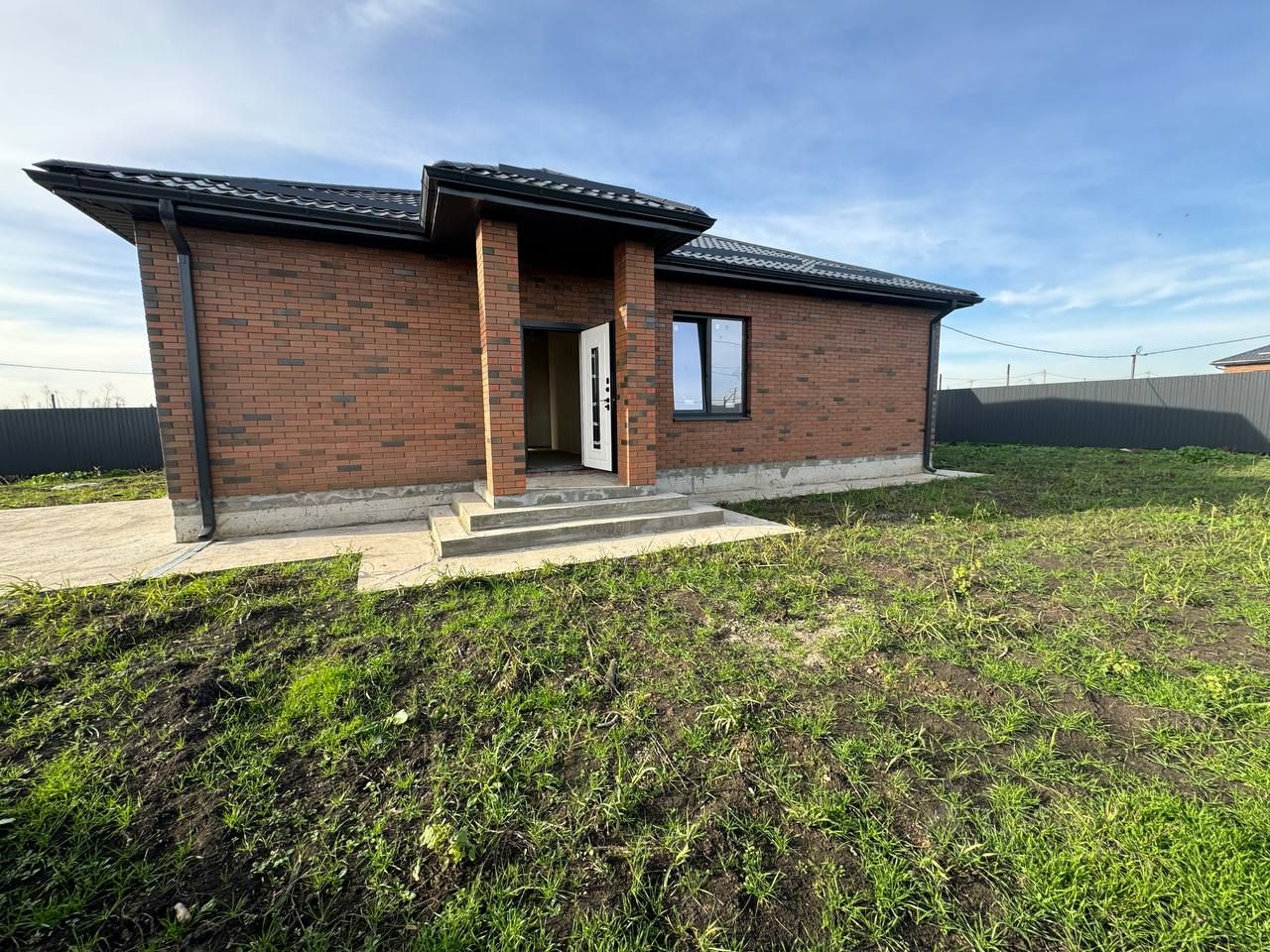 Продаю новый дом на большом участке. Дом построен из керамического кирпича, качественная предчистовая отделка, теплые полы, разводка электричества. Газ, свет 15 квт. Вся инфраструктура под боком. Три комнаты и кухня гостинная. Можно в ипотеку.