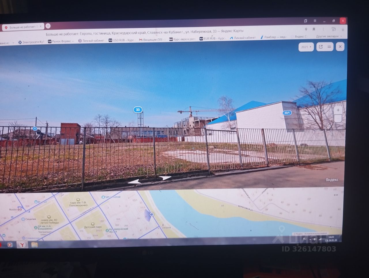 После сноса гостиницы "Европа", остался прямоугольный земельный участок на набережной 33 реки Кубань в городе Славянске-нп-Кубани. Набережная, тихое место, рядом центр, центральный базар, развлекательный центр. Виды разрешенного использования - гостиничное обслуживание, фактически можно строить дома средней этажности и т.д. К участку подведены все коммуникации, вода, свет, канализация, газ.