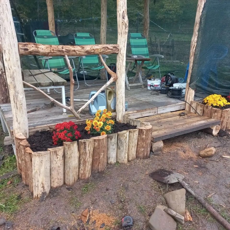 Высажено 150 кустов малины и подготовлена земля для огорода (3 сотки ) водоснабжение осуществляется через накопительные емкости (2,2 тонны)подается вода в душ и в кухню через гидрофор (насос) , установлен бойлер на 30 литров