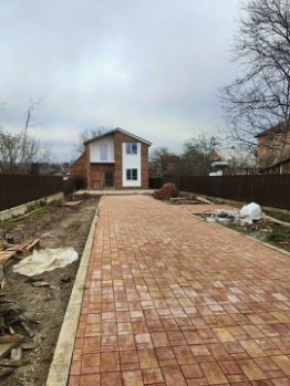 В данный момент этап строительства- Благоустройство: брусчатка, забор по периметру.