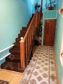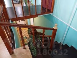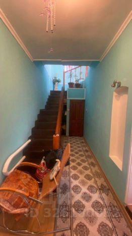 Лестница на второй этаж бетонная, перила деревянные .