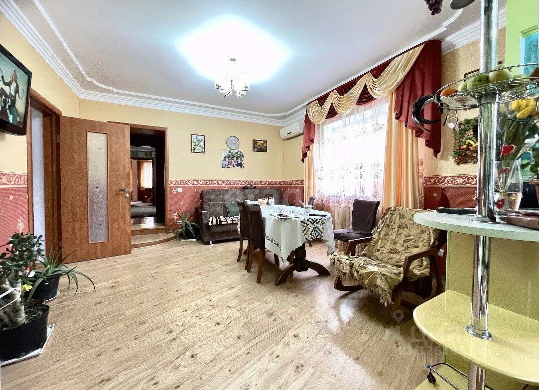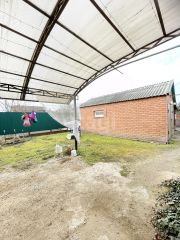 Материал стен саман, обложенный кирпичом. Газ заведен в дом, водоснабжение центральное, канализация септик. Во дворе времянка с газовым отоплением, большой навес из поликарбоната, гараж, хозпостройки, сад, огород. Дом имеет два входа, территория вокруг ухоженная, во дворе тротуарная плитка, имеется система видеонаблюдения. Участок 10,6 соток.