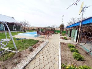 В курортной станице Должанской Ейского района по улице Делегатской предлагается к продаже жилой дом с готовым гостиничным бизнесом на большом участке в 23 сотки.