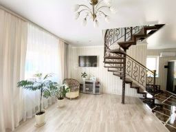 Предлагается к покупке двухэтажный дом 200 м2, с высококачественной отделкой, на участке 5,5 соток, в районе военного городка. В доме 5 комнат, кухня, с выходом во двор. На территории двора есть еще домик с ванной комнатой, гардеробной, полностью подходит для проживания, есть сауна, гараж c ямой и автоматическими воротами.