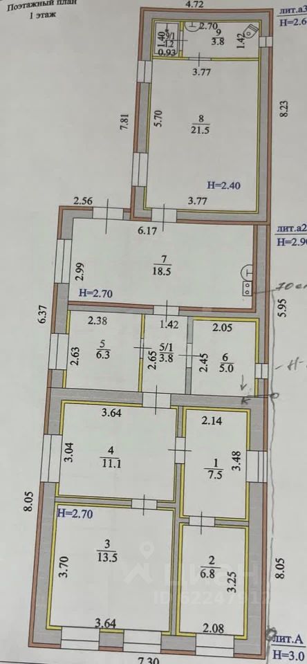 Общая площадь дома - 99,1 м2., 6 жилых комнат - 60,4 м2., кухня - 18,5 м2., 2 совмещенных санузла. Возможно проживания 2 семьями. Отопление газовое, водоснабжение центральное, есть скважина с насосом, электропроводка новая, канализация септик. На окнах ролл ставни, 3 сплит-системы, вся мебель и техника остается.