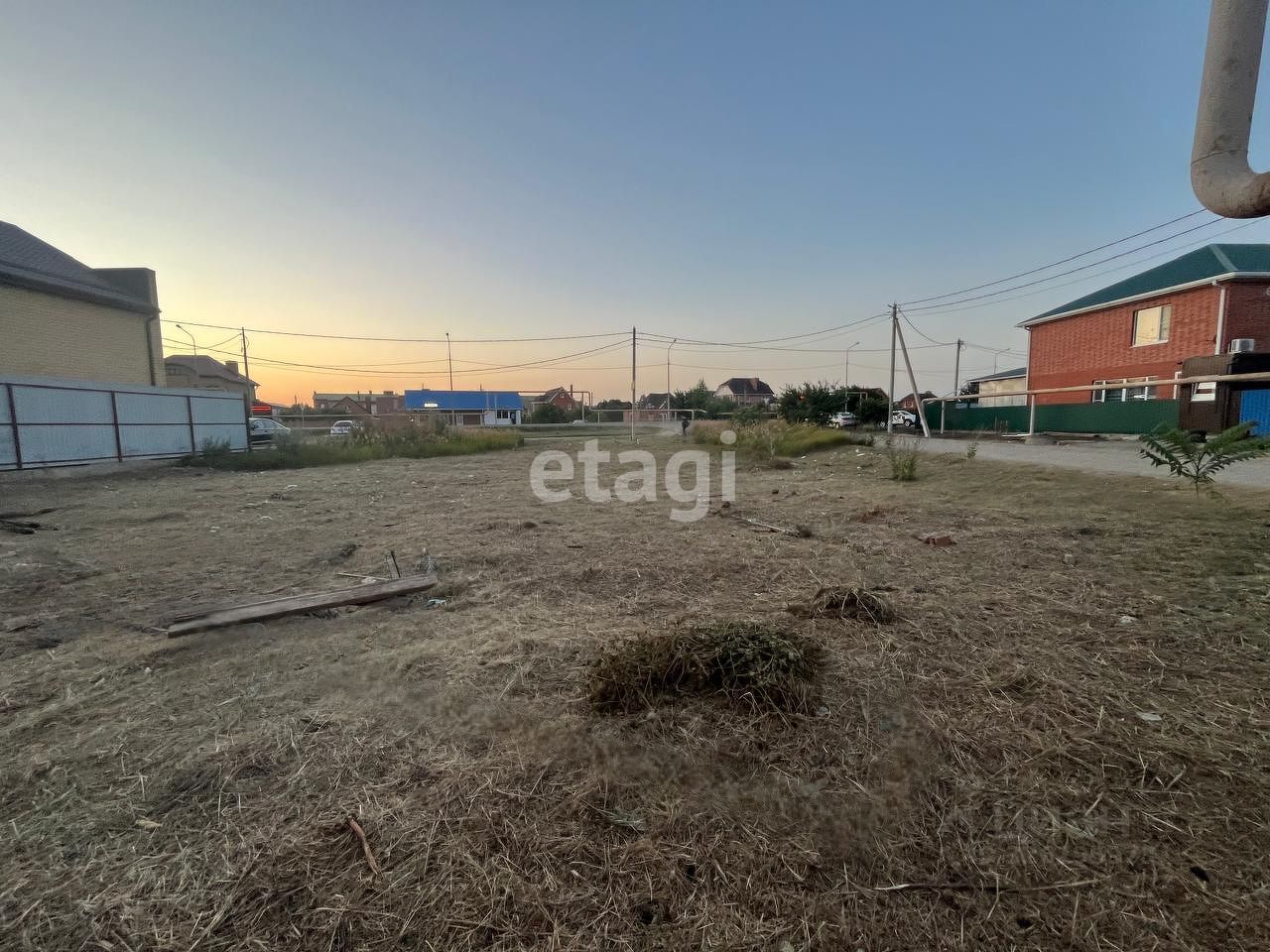 Общая площадь - 5,6 сотки. Ширина фасада - 34 м, глубина - 17 м. Все коммуникации проходят по улице, по границе участка. Газ по меже, электричество - столб возле участка. Участок чистый, без фундамента.