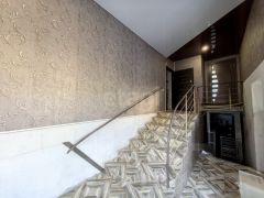 Общая площадь составляет 217 м2. В доме 3 изолированные комнаты, кухня, совмещенный санузел, холл с лестничной клеткой, два подсобных помещения, туалет, коридор, подвал 71.4 кв.м.
