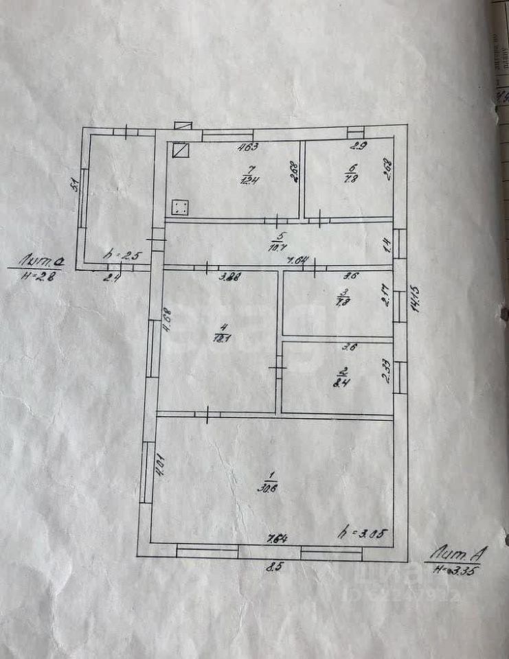Общая площадь 95,8 кв.м., жилая-65 кв.м., кухня-12,4 кв.м. В доме четыре комнаты, совмещенный санузел.
