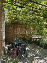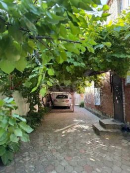 Во дворе въезд на 3 машины, навес, виноградная беседка, высажен фруктовый сад, цветы.