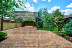 Парковка: навес для нескольких автомобилей, выложенный плиткой