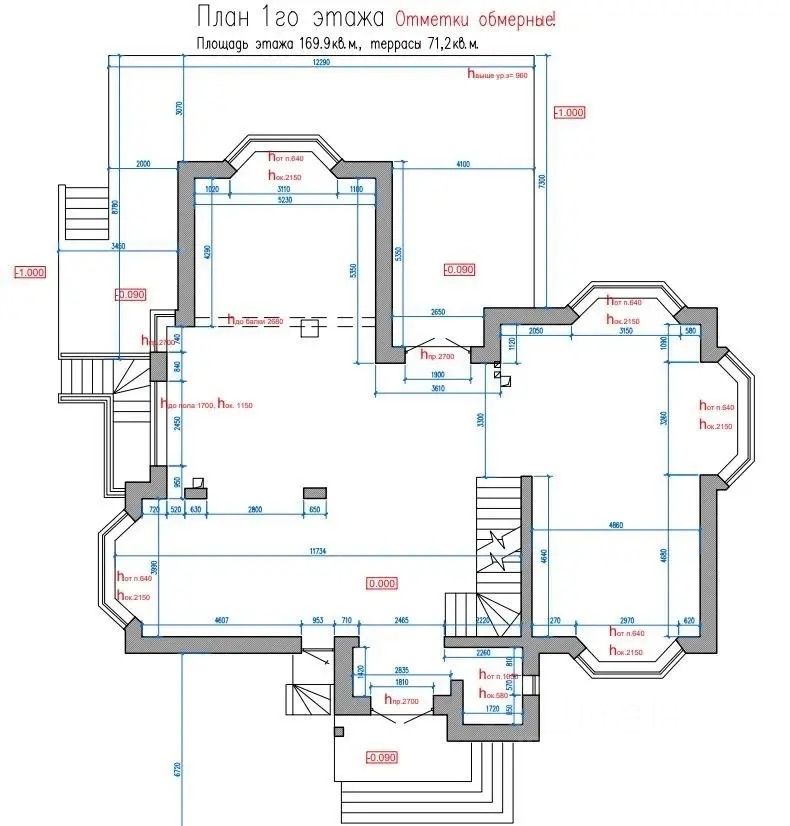 Планировка дома свободная и вы можете воплотить проект своей мечты и продумать все до мелочей, комнаты получатся просторные и светлые, правильной формы. В доме можно реализовать огромную кухню-гостиную, с эркерным окном, большие ванные комнаты, гардеробные, мастер-спальни. Высота потолков в каждой комнате 3 метра 20 сантиметров.