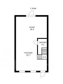 1й этаж: светлая прихожая, просторная кухнягостиная, санузел;