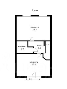 2й этаж: две большие комнаты (одна с балконом), санузел. Одну из комнат можно разделить стеной — получится дополнительно две комнаты!