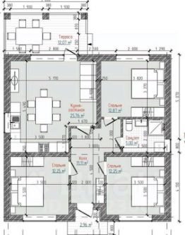 Планировка: Общая площадь 100 кв.м.. Просторная кухня гостиная, три спальных комнат, санузел. При строительстве использовались качественные материалы.