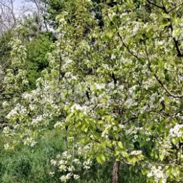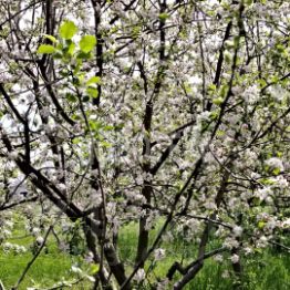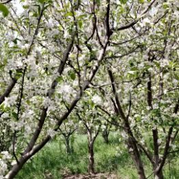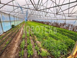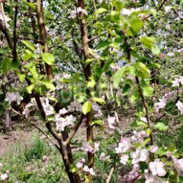 Для удобства есть две скважины, электричество мощностью 15 кВт и газ по меже. В конце участка расположен большой фруктовый сад.