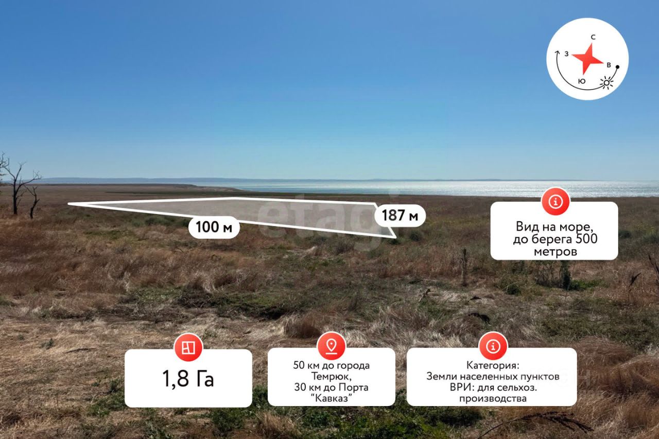 Продаётся участок площадью 1,79 га на побережье Таманского залива
