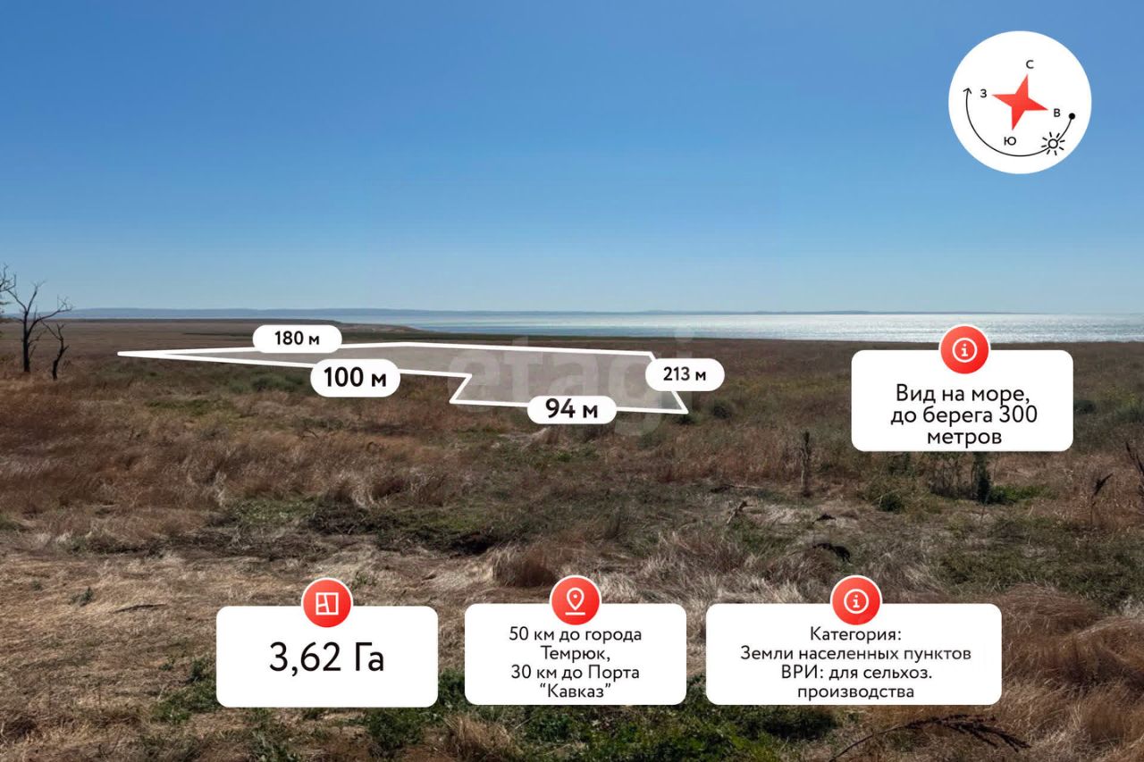 Продаётся участок площадью 3,62 га на побережье Таманского залива