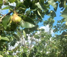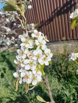 Растут плодовые деревья и кустарники: яблоня, груша, инжир, шарафуга, черешня, персик.