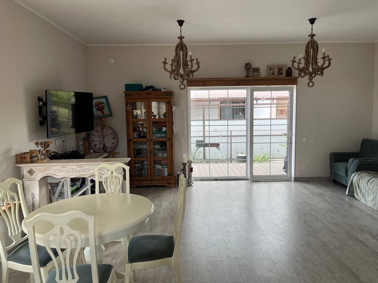 Просторная кухня-гостиная с выходом на террасу. Есть камин и выводы под него(нужно установить). Отличная тепло- и звукоизоляция (построен из кирамзитобетонного блока, утеплен минватой, фасад-Славянский кирпич).